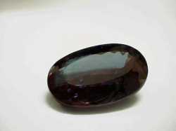 ←アレキサンドライト 光によってカラーチェンジします。 ロシアのアレクサンドル2世が12歳の誕生日に発見されたことから命名されました。 ロシア産は今産出が少なく、写真はブラジル産です。 白熱電球下では赤っぽいカラーを示しま |
